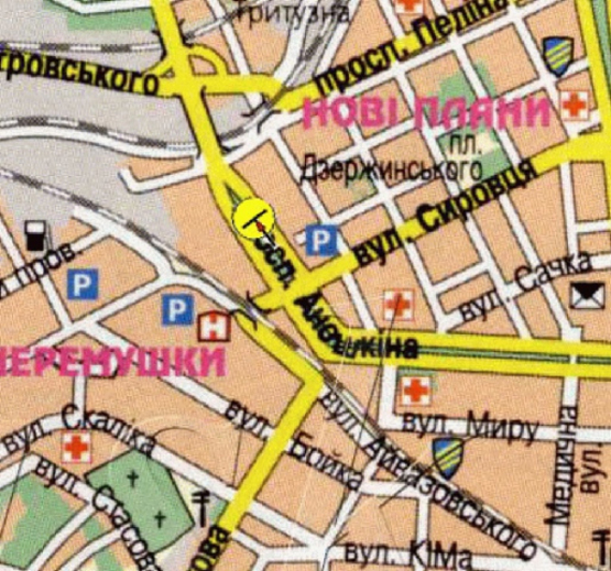 - Адреса: Аношкіна пр-т, перетин з пр-ту Т.Г.Шевченка, в'їзд на Лівобережний міст, біля кафе Сафран, з центру/пр-т Аношкина, пересечение с ул.Сыровца, въезд на Левобережный мост, возле кафе Сафран, из центра