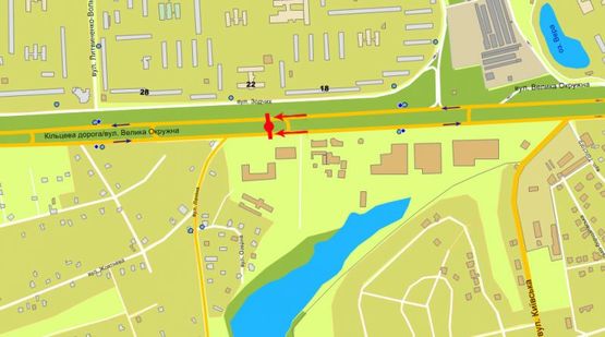 - Адреса: Окружная дорога, ул. Зодчих, 20 направление на пр. Победы (разделитель)