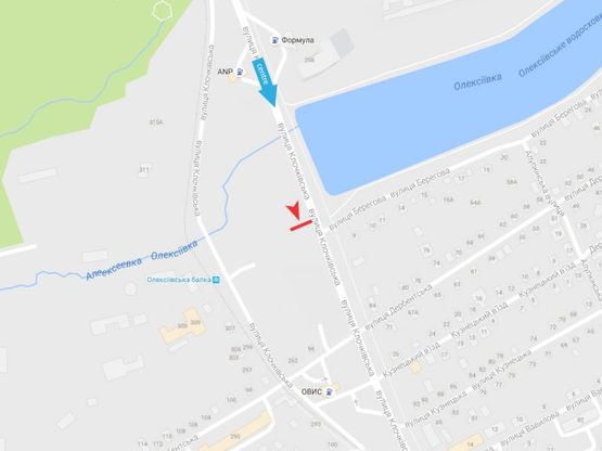 Схема рекламної площини за адресою Клочковская ул. - Береговая ул. (1), в центр
