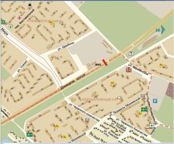 Схема рекламної площини за адресою Донецкое шоссе- ул.Березинская (перед поворотом на ТЦ"Караван")