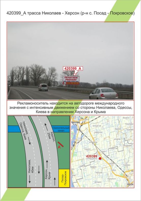 Білборд в м. Траси на траса Миколаїв – Херсон (р-н с.Посад-Покровське), ,