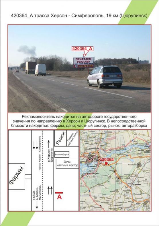 Білборд в м. Траси на Траса Херсон – Сімферополь, 19 км (Цюрупинськ), ,