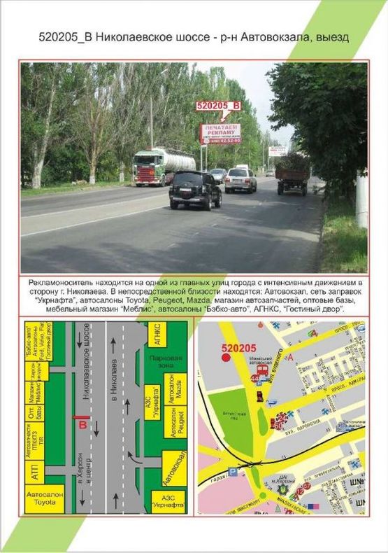 Схема рекламної площини за адресою , Миколаївське шосе - р-н Автовокзалу, виїзд,