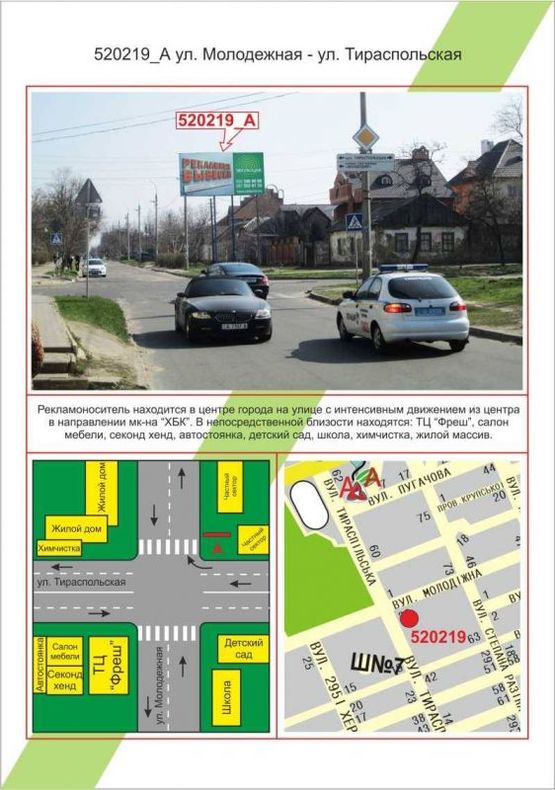 Схема рекламної площини за адресою Центр, вул. Молодіжна - вул. Тираспольська,