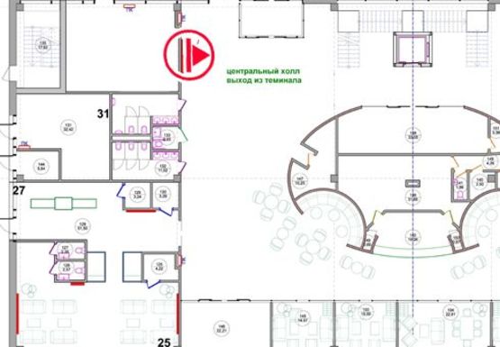 Схема рекламної площини за адресою Центральный холл, 1 этаж  (Терминал B)