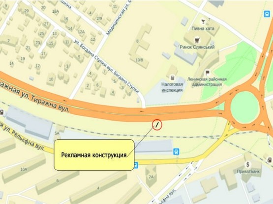 Схема рекламної площини за адресою ул.Тиражная, напротив Днепровской РА