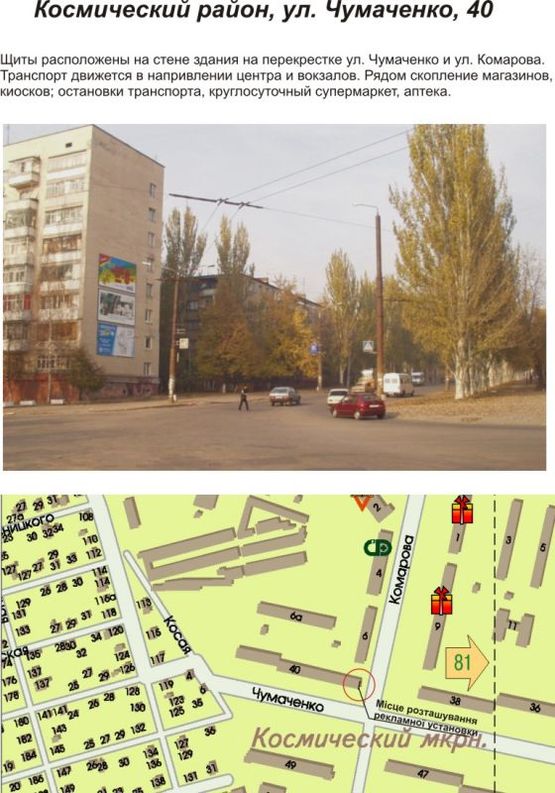Фото рекламної площини за адресою ул. Чумаченко, 40 - Космический р-н, стена