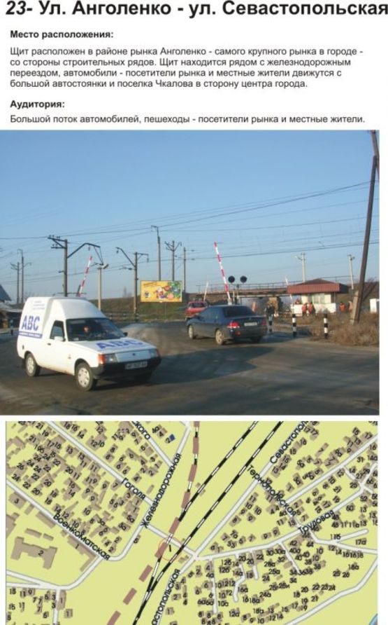 Схема рекламної площини за адресою Анголенко - ул. Севастопольская