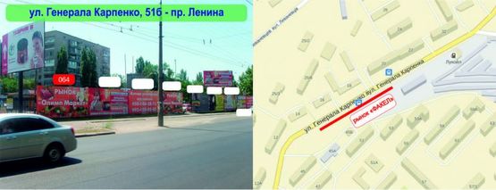 Схема рекламної площини за адресою ул. Генерала Карпенко, 51б - пр. Центральный