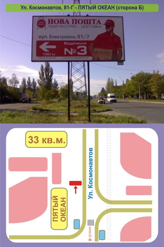 Замовити Білборд в г. Миколаїв за адресою Ул. Космонавтов, 83А - перед «Пятым Океаном» (сторона Б) можна зателефонувавши менеджерам за телефонами: +38(099) 395-28-27, або через форму онлайн заявки
