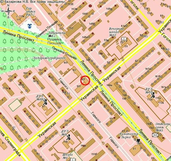 Схема рекламної площини за адресою пр-т Ленина (Соборный) , 105 - Украинская