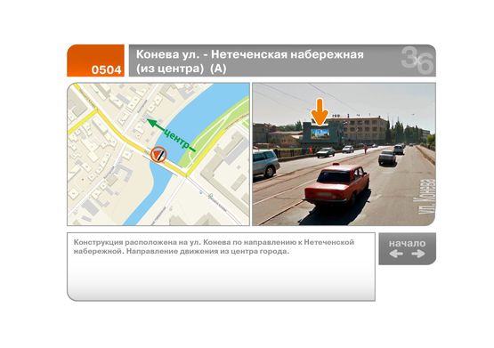 Схема рекламної площини за адресою Конева ул. - Нетеченская набережная  (из центра)  (Б)