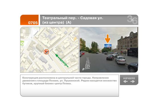 - Адреса: Театральный пер. - Садовая ул. (из центра) (А)