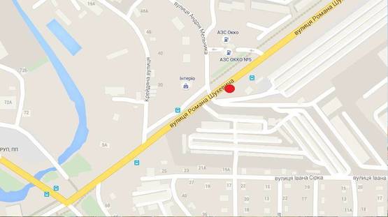 Схема рекламної площини за адресою м. Рівне вул. Шухевича 12, навпроти автозаправки “OKKO” та перехресті вулиць Шехевича/Андрія Мельника, неподалік офісний центр