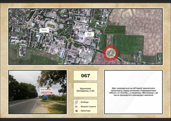 Схема рекламної площини за адресою в.Курчатова, Фоззі, за заправкою ( Колоденка - Кладовище)