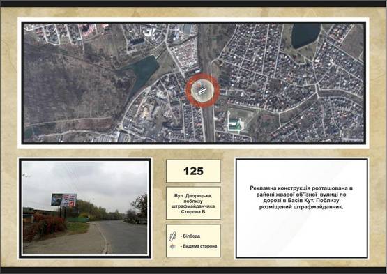 Схема рекламної площини за адресою вул. Дворецька (біля штрафмайданчика)