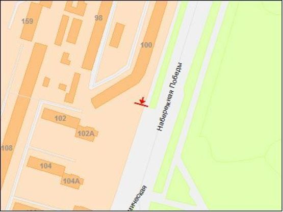 Схема рекламної площини за адресою Наб.Победы,100 - пл.Победы, из центра,призма