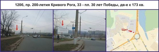 Білборд в м. Кривий Ріг на пр. 200-летия Кривого Рога, 33 - пл. 30 лет Победы, дв-е к 173 кв.