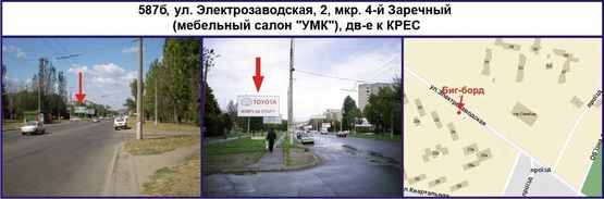 Замовити Білборд в г. Кривий Ріг за адресою ул. Электрозаводская, 2, мкр. 4-й Заречный (мебельный салон "УМК"), дв-е к ул. Десантная можна зателефонувавши менеджерам за телефонами: +38(099) 395-28-27, або через форму онлайн заявки