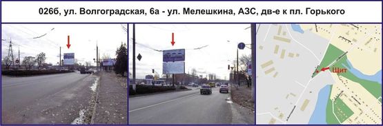 - Адреса: ул. Волгоградская, 6а - ул. Владимира Великого (Мелешкина), АЗС, дв-е к пл. Горького