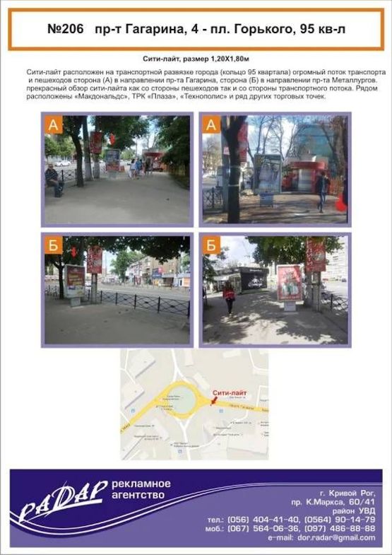 Сітілайт в м. Кривий Ріг на пр-т Гагарина, 4 - пл. Горького, 95 кв-л