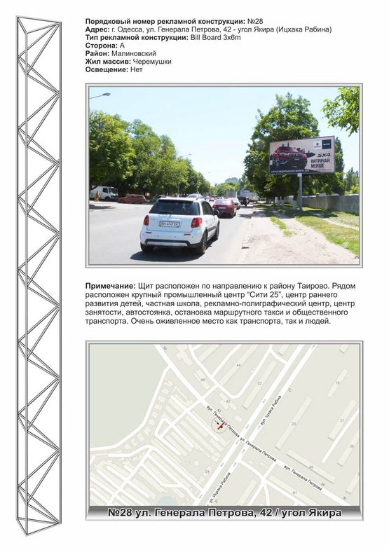 Замовити Білборд в г. Одеса за адресою №28 ул Ген -Петрова,42 - ул Якира(И.Рабина) на остановке можна зателефонувавши менеджерам за телефонами: +38(099) 395-28-27, або через форму онлайн заявки