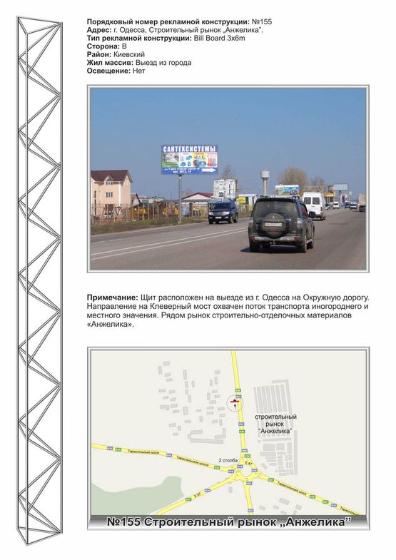 Білборд в м. Одеса на №155 Строительный рынок Анжелика ст Б р-он 2х столбов золотой