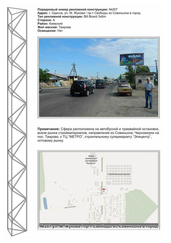 Схема рекламної площини за адресою №207 М.Жукова - пр-т Свободы из Совиньона ст.А МЕТРО ТАВРИЯ
