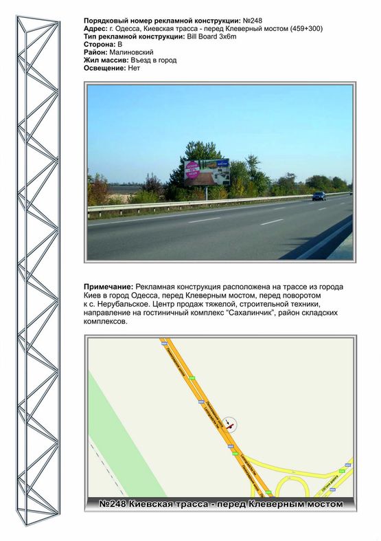 Схема рекламної площини за адресою №248 Киевская трасса -перед Клеверным мостом в город