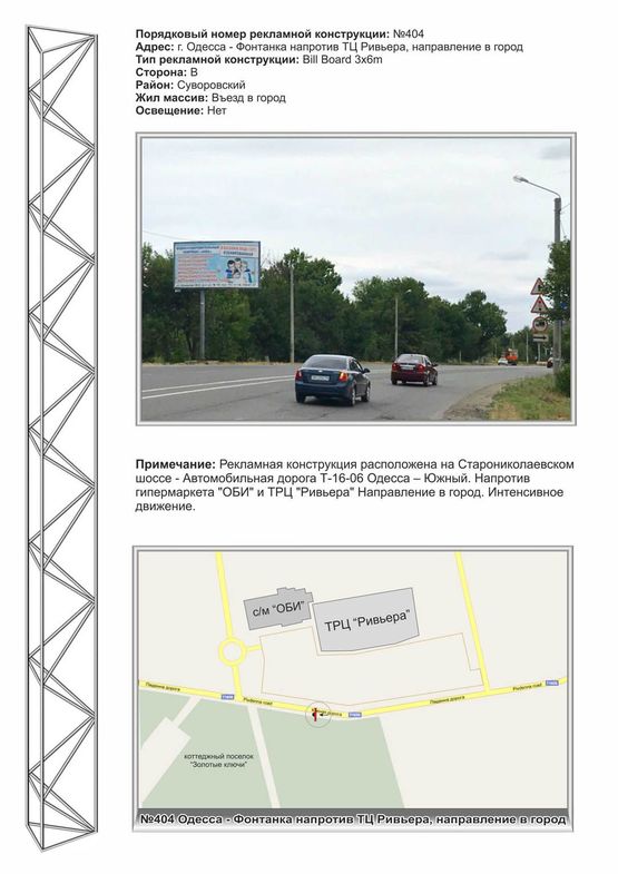 Білборд в м. Одеса на №404 Одесса - Фонтанка ТЦ Ривьера ст.Б в город