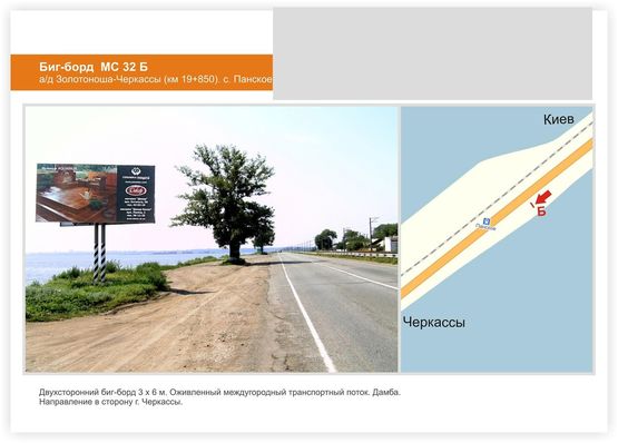 Білборд в м. Траси на а/д Золотоноша-Черкассы (км 19+750). с. Панское, в сторону Черкасс