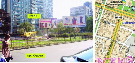 Замовити Білборд в г. Дніпропетровськ/Дніпро за адресою пр. Кирова - ВВЕРХ, за пр. Пушкина, ТЦ МИРИАДА можна зателефонувавши менеджерам за телефонами: +38(099) 395-28-27, або через форму онлайн заявки