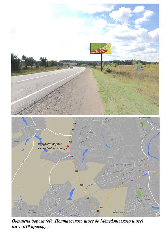 Фото рекламної площини за адресою Окружна дорога (на ділянці від Полтавського шосе до Мерефянського шосе) км 4+040 праворуч