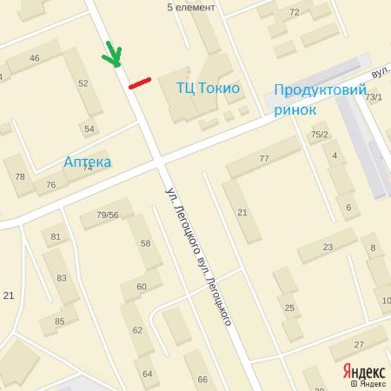 Схема рекламної площини за адресою вул.Легоцького(ТЦ ТОКІО), напр.-вул.Заньковецької