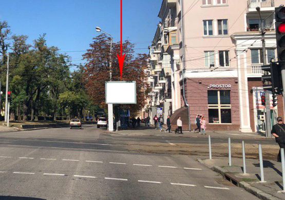 Схема рекламної площини за адресою t162A7,просп. Дмитра Яворницького (Карла Маркса)- пл. Соборна (Жовтнева), рух в центр