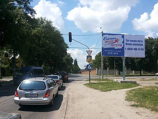 Білборд в м. Дніпропетровськ/Дніпро на ул. Большевицкая - ул. Строителей (на светофорном перекрёстке, по движению в ТЦ Апполо, Метеор), А