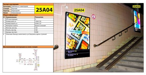 Схема рекламної площини за адресою Станция метро: Научная, Выход к Налоговой, к ул. Бакулина, вдоль ступеней