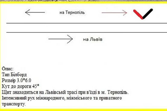 Білборд в м. Траси на Тернопіль -Львів , на Львів