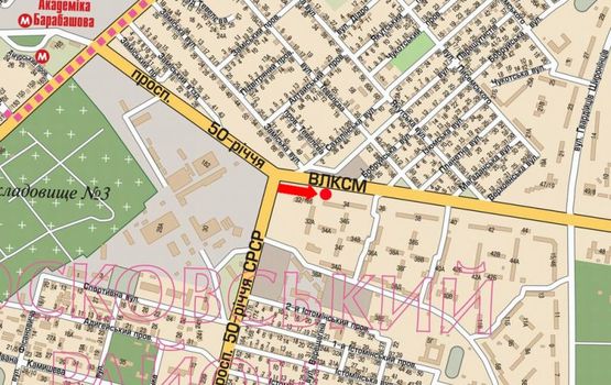 - Адреса: Юбилейный пр. (бывш. 50 лет ВЛКСМ пр.), 34, флажок, со стороны рынка "Барабашово"