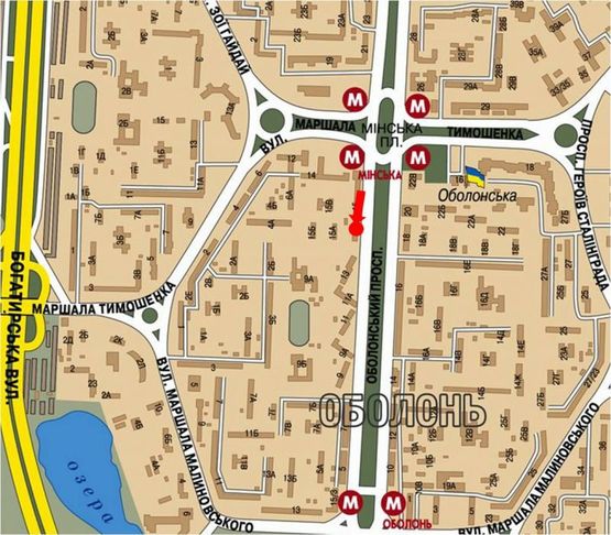 - Адреса: Оболонский пр., 15, в конце дома, в сторону ст. м. "Оболонь"