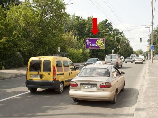 Білборд в м. Київ на Святошинская ул., 25 / Святошинский пер., светофор, в сторону Победы пр.