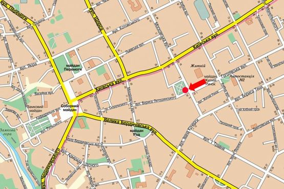 - Адреса: Небесной сотни ул. (бывш. ул. Московская) / ул. Лятошинского, возле центрального рынка "Житний", верхний