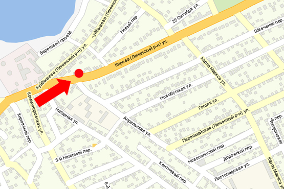 - Адреса: Покровская ул. (бывш. / Кирова ул.) / Апрельская ул., в центр (флажок)