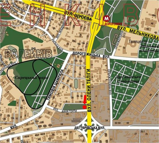 - Адреса: Телиги ул., 200м. от Гонты ул., напротив, в сторону ст. м. "Шулявская"