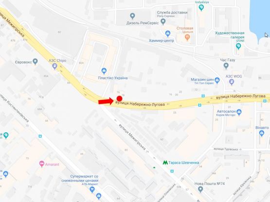 - Адреса: Набережно-Луговая ул. - ул. Межигорская, в центр