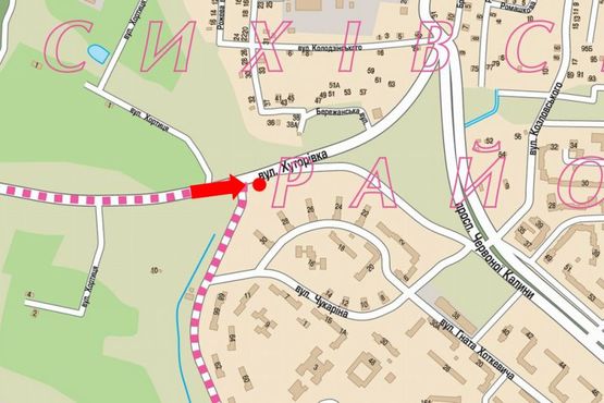 Схема рекламної площини за адресою Хуторовка ул. / Хоткевича ул., возле оптового рынка "Шувар"