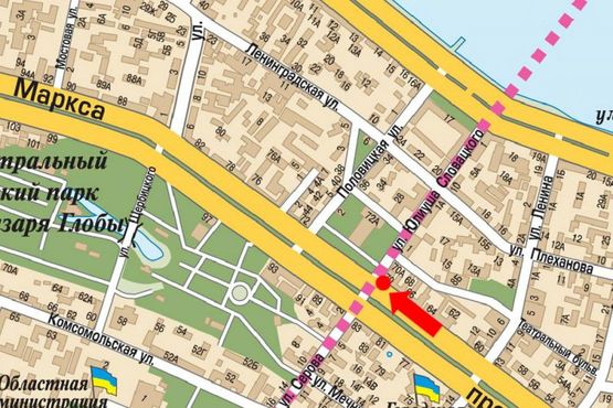 - Адреса: Яворницкого пр. (бывш. Маркса пр.) / Фабра ул. (бывш. Серова ул.)