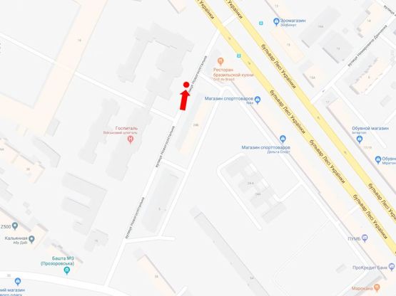 Схема рекламної площини за адресою Новогоспитальная ул. (бывш. Щорса пер.), 24б, в сторону бул. Украинки