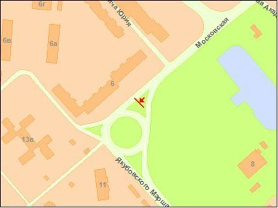 Схема рекламної площини за адресою Якубовского ул. / Вильямса ул., разделитель, на Кольцевую дорогу