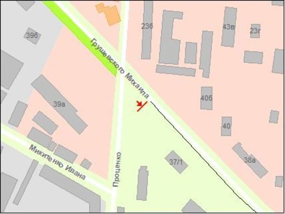 Схема рекламної площини за адресою Грушевского ул / Проценко ул, в центр